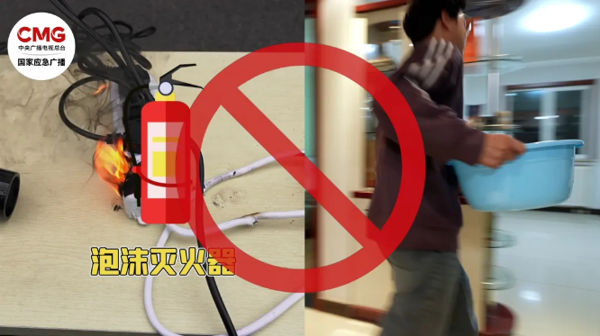 电气火灾发生时,千万不能用水或泡沫灭火器灭火,有触电风险。如无法确定电源是否被切断,可用干粉灭火器、二氧化碳灭火器扑救。